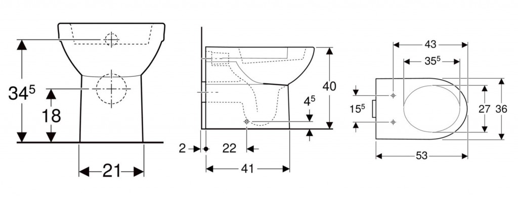 WC Selnova stojící na podlaze, vzadu rovný ke stěně, částečně uzavřený tvar