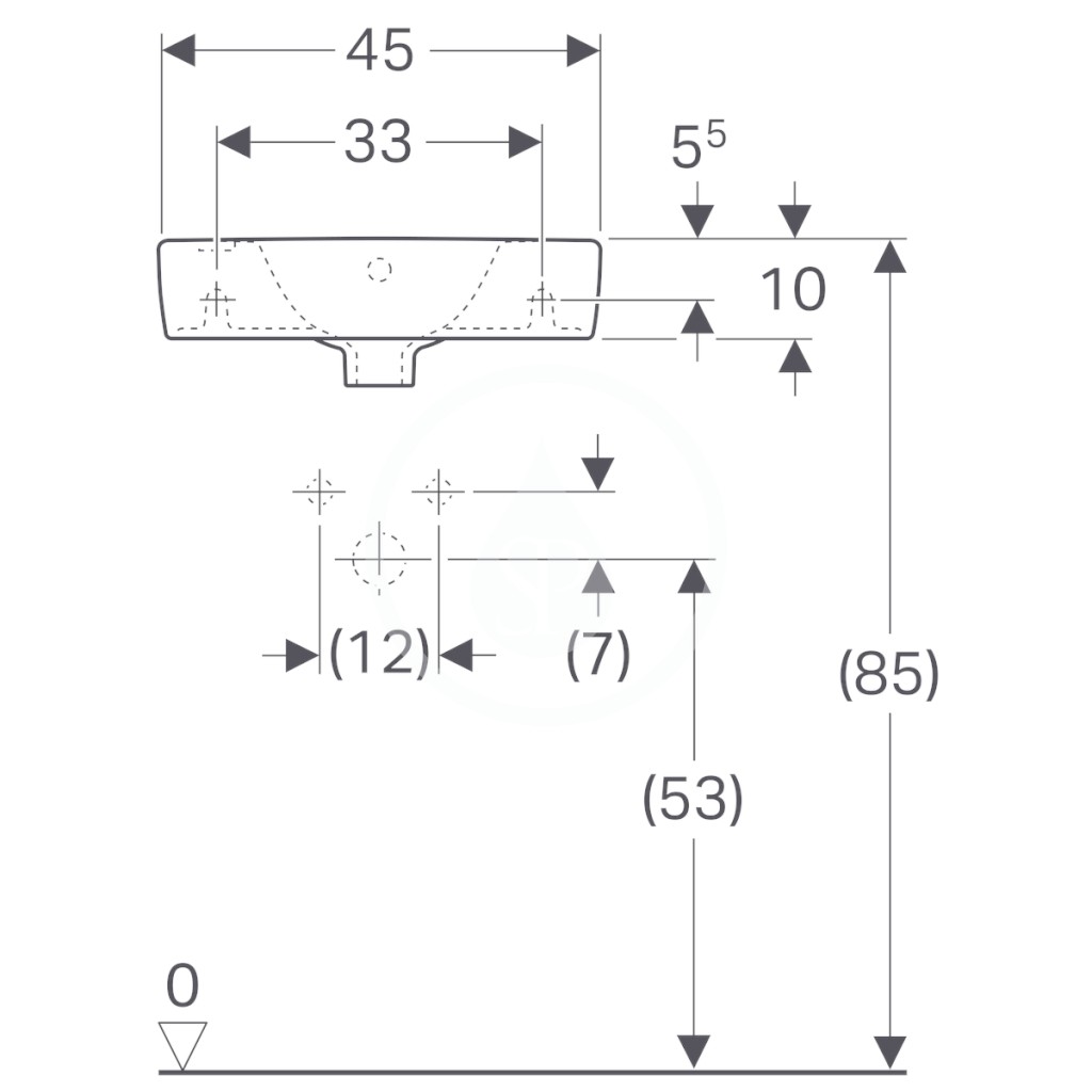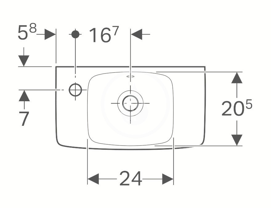 Asymetrické umývátko Selnova, s 1 otvorem vlevo a s odkládací plochou