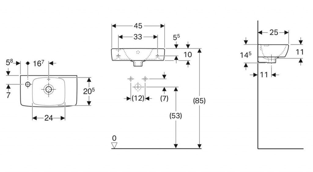 Asymetrické umývátko Selnova, s 1 otvorem vlevo a s odkládací plochou