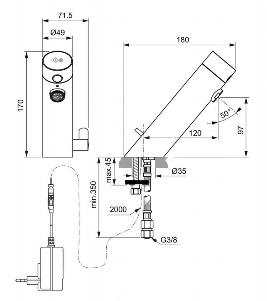- integrovaný infračervený senzor Zapnuto-Vypnuto se selonoid ventilem instalovaným v armatuře