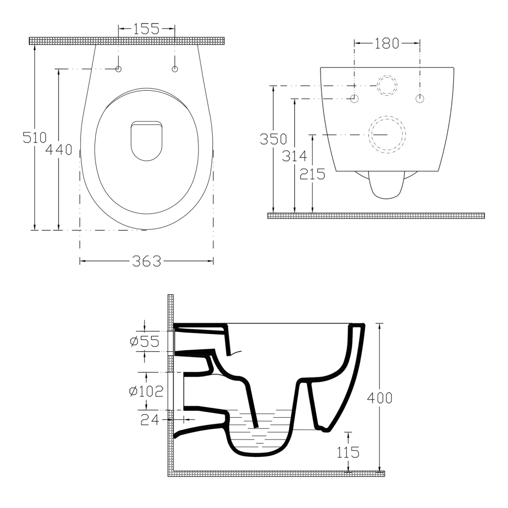 Rimless (NoRim) – toalety bez tradičního oplachového kruhu. Hladký povrch bez dutin a záhybů. Oplachová voda vytéká rozdělovačem vody pouze ze zadní části WC mísy a díky speciálnímu tvaru keramiky dokonale opláchne vnitřní prostor. Výhodou je snadná údržba a čištění WC mísy. Samozřejmostí je duální systém splachování s množstvím vody 3 nebo 4,5 l.