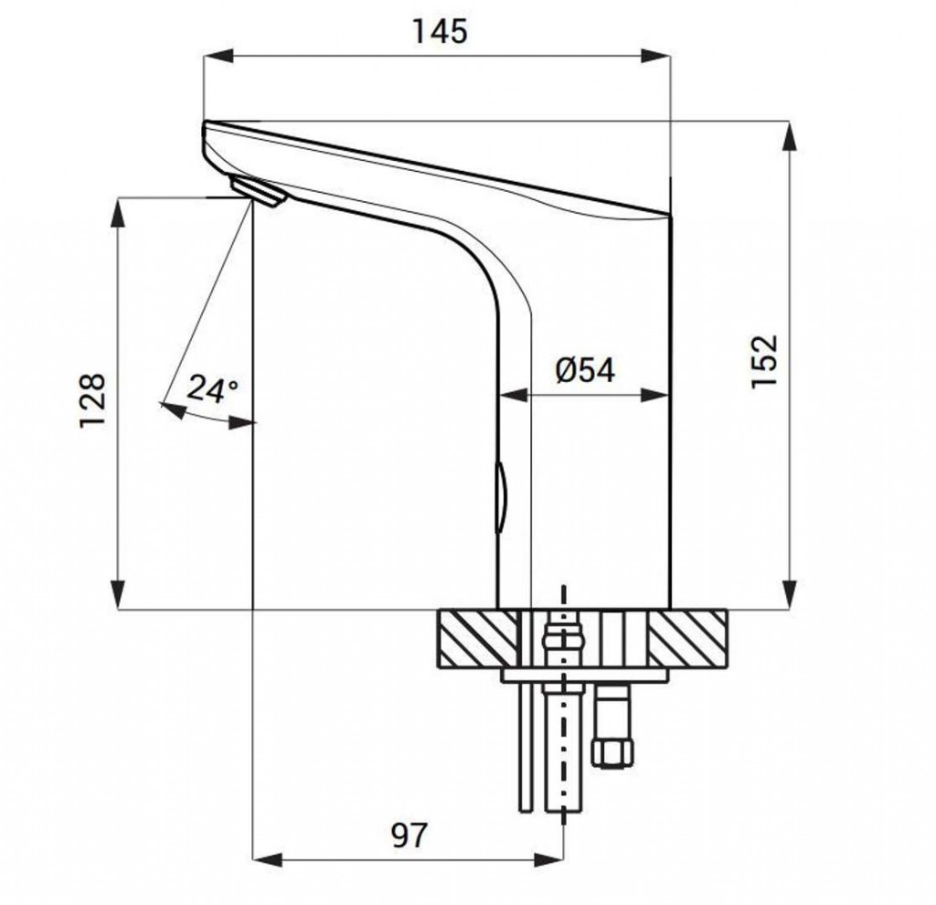 - reaguje na přítomnost rukou ve snímané zóně okamžitým spuštěním vody