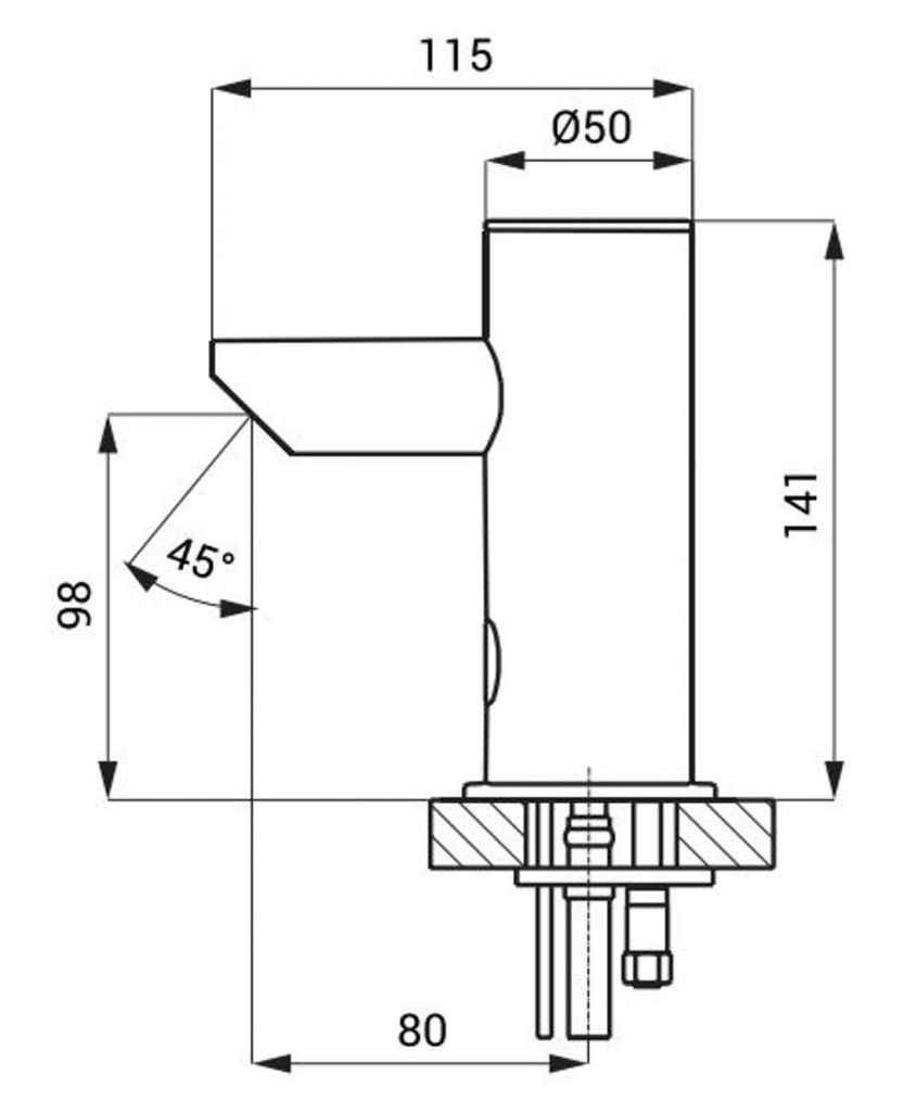 - reaguje na přítomnost rukou ve snímané zóně okamžitým spuštěním vody