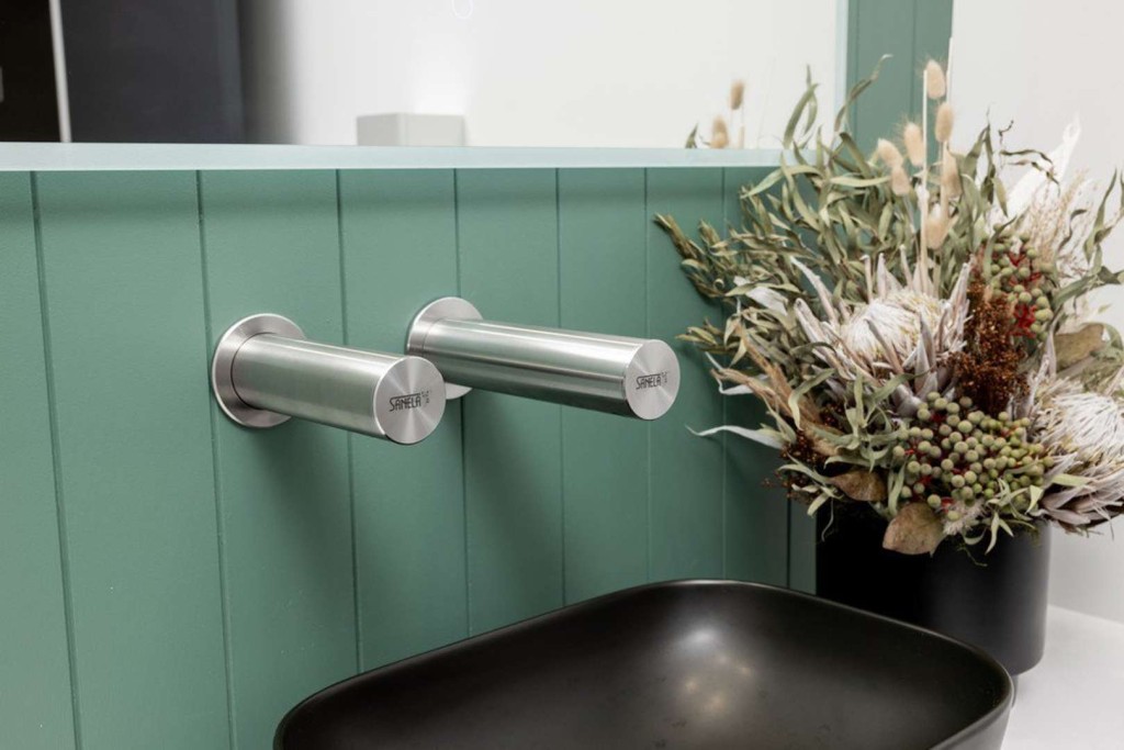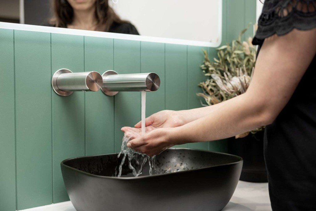 - reaguje na přítomnost rukou ve snímané zóně okamžitým spuštěním vody