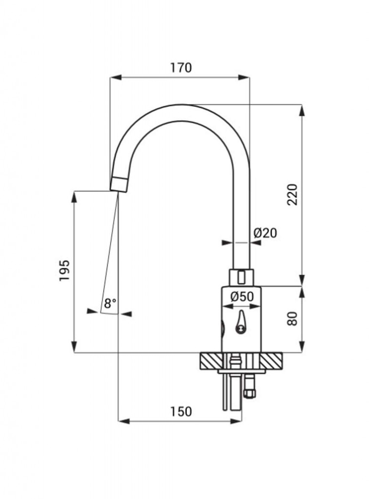 - reaguje na přítomnost rukou ve snímané zóně okamžitým spuštěním vody