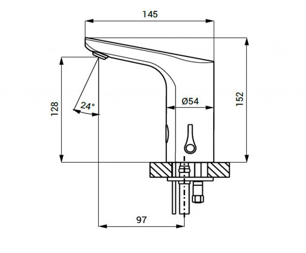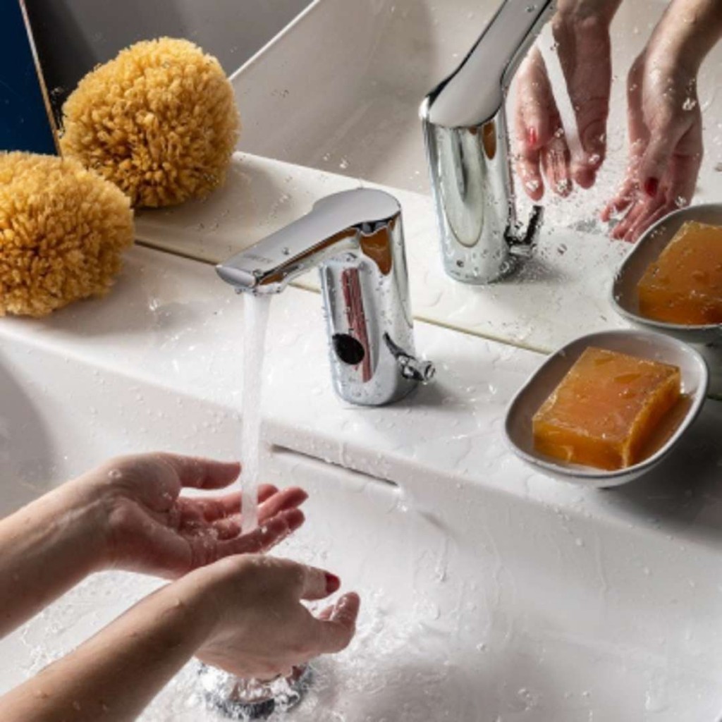 - reaguje na přítomnost rukou ve snímané zóně okamžitým spuštěním vody