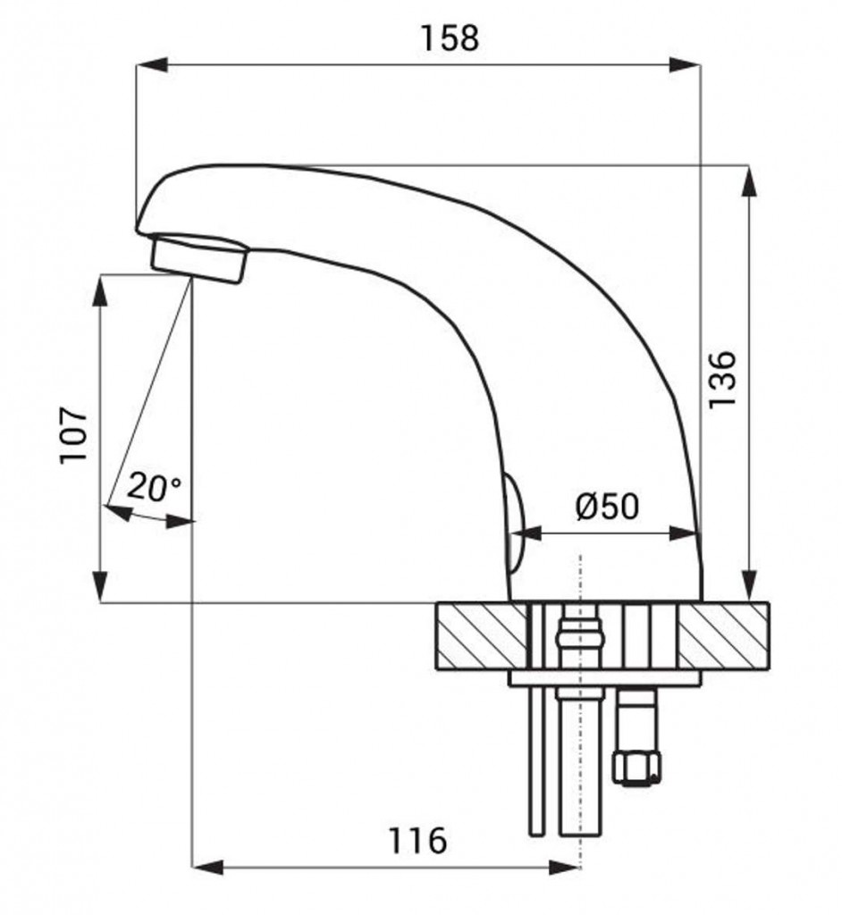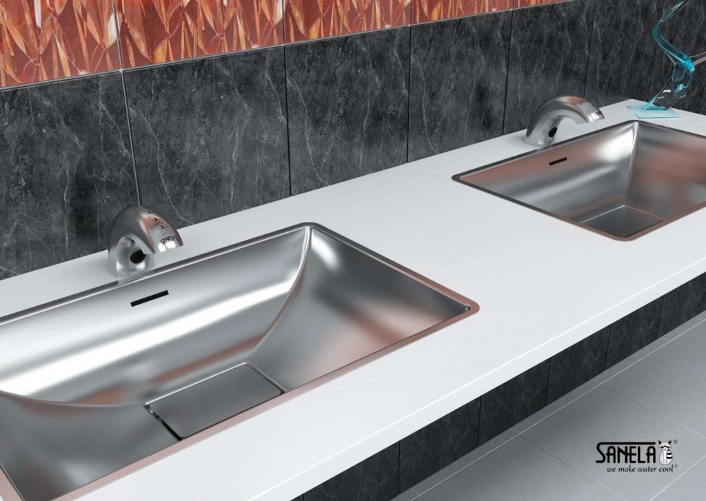 - reaguje na přítomnost rukou ve snímané zóně okamžitým spuštěním vody