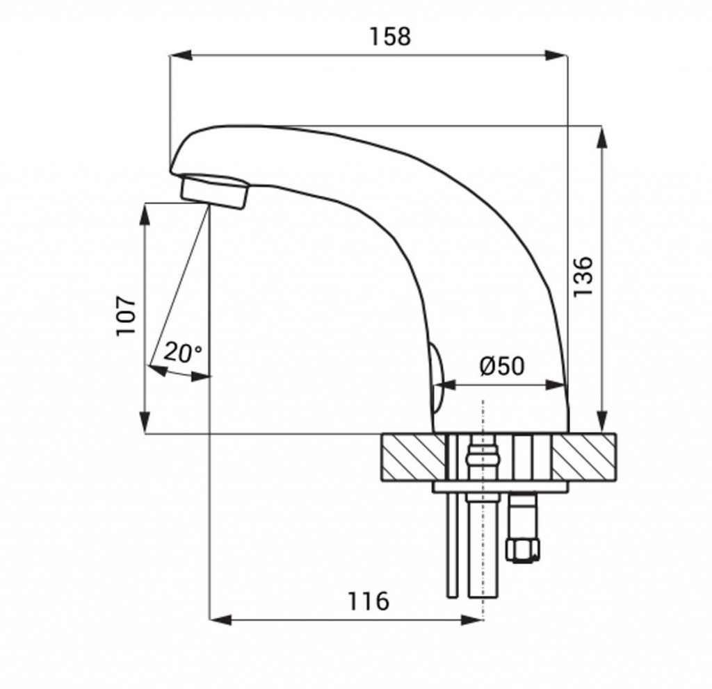 reaguje na přítomnost rukou ve snímané zóně do vzdálenosti 0,3 m od snímače okamžitým spuštěním vody