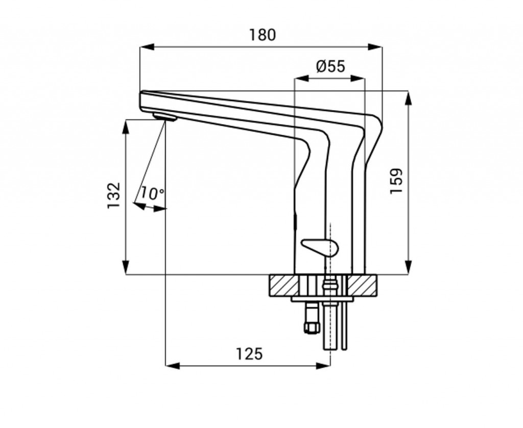 reaguje na přítomnost rukou ve snímané zóně do vzdálenosti 0,3 m od snímače okamžitým spuštěním vody