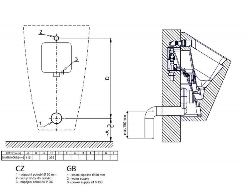 reaguje pouze na použití pisoáru (vyhodnocuje změny, ke kterým dochází uvnitř pisoáru při průtoku kapaliny)