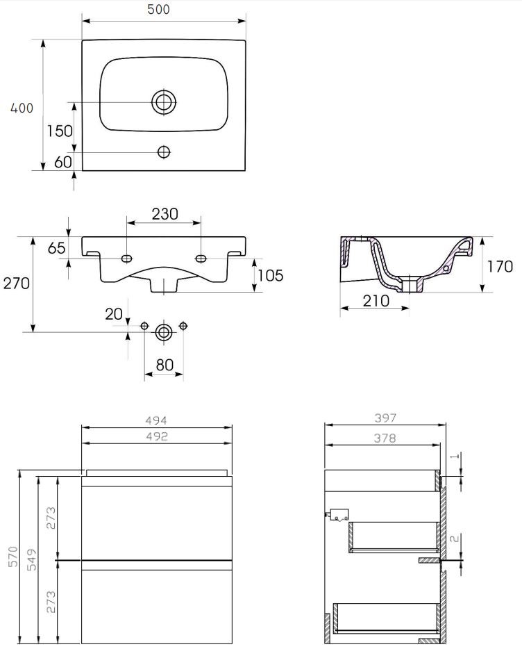 SET 972 MODUO 50 ŠEDÁ DSM (SKŘÍŃKA + UMYVADLO) (S801-219-DSM)