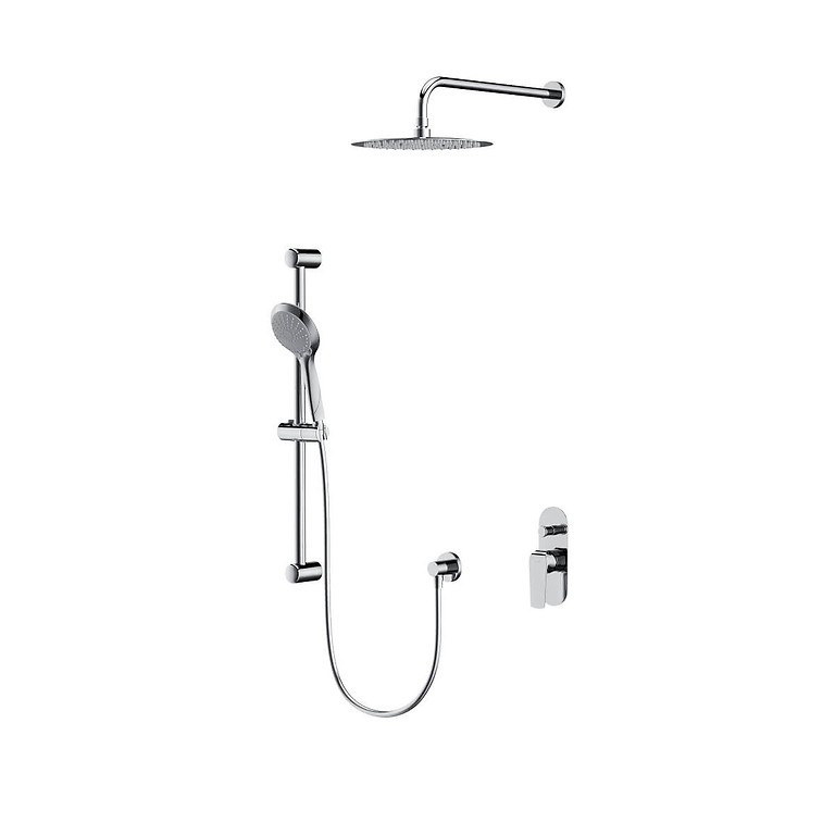 Podomítkový set z kolekce CITY obsahuje: podomítkovou vanovou/ sprchovou baterii, sprchové rameno (mosaz), 3funkční ruční sprchu ABS - velikost Ø 13,8 cm, 150 cm dlouhou PVC sprchovou hadici (schváleno WRAS), SLIM dešťová sprcha o průměru 25 cm, tyč 70 cm s posuvným madlem (nerez), mosazná spojka. Dešťová sprcha a ruční sprcha mají snadno omyvatelnou silikonovou úpravu EasyCLEAN.