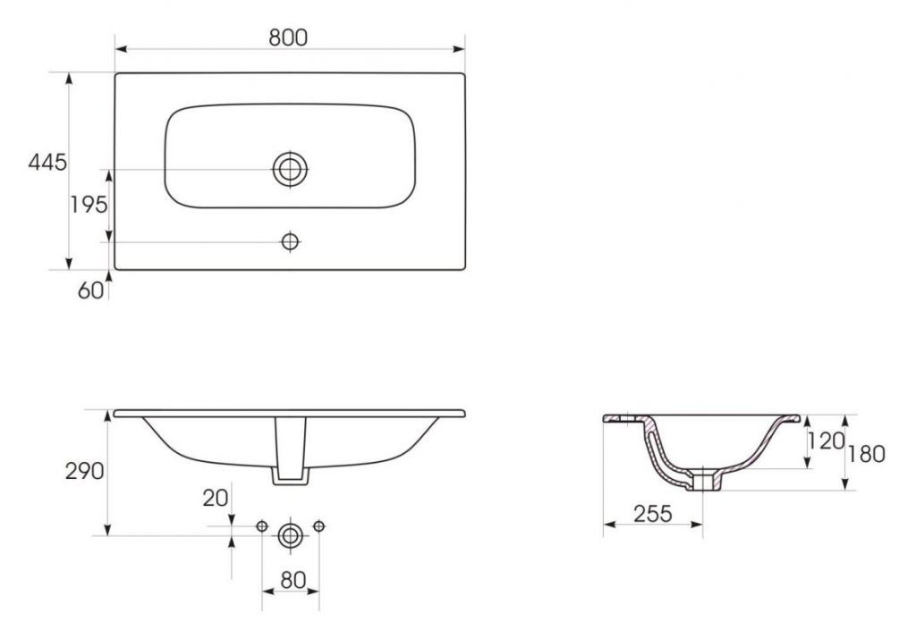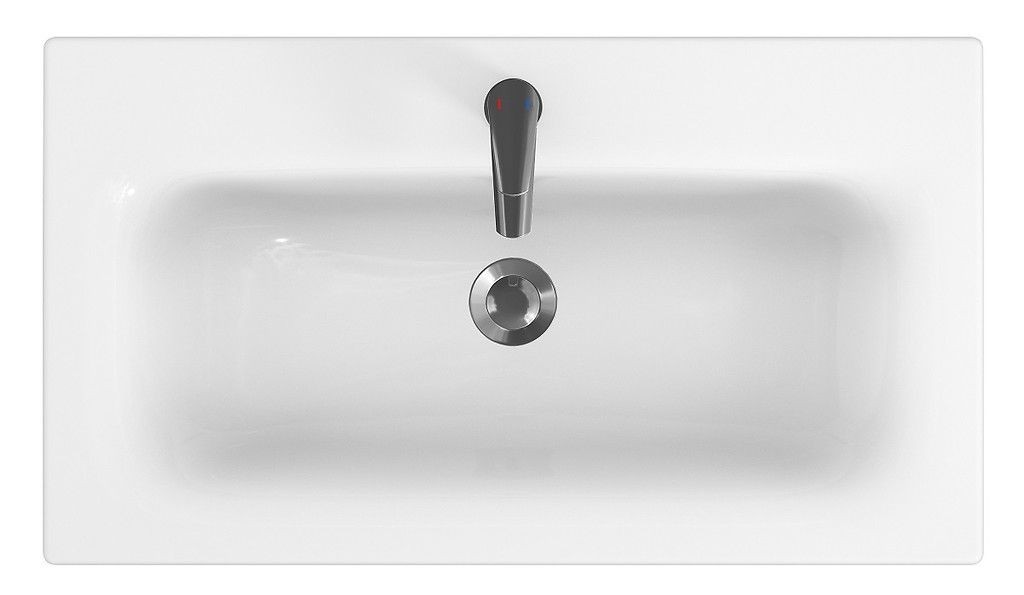 Sestava se skládá z umyvadlové skříňky MODUO a keramického zápustného umyvadla MODUO 80. Čela skříňky jsou vyrobena z lakované nábytkové MDF desky šedé barvy s lesklým povrchem. Skříňky série MODUO mají pohodlné frézované úchyty, které vytváří dekorativní prvky a umožňují jednoduché otevírání a zavírání dveří nebo šuplíků. Šuplíky jsou vybaveny systémem měkkého zavírání.