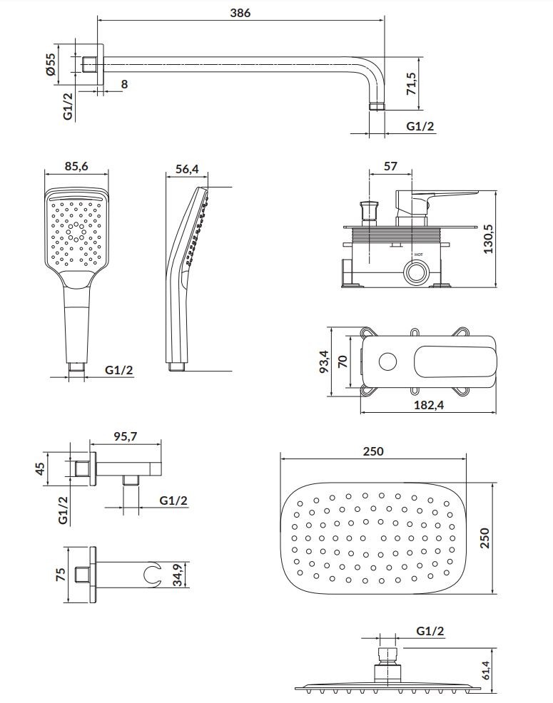 Podomítkový sprchový set z kolekce LARGA. Díky chromové povrchové úpravě Cersanit Super Shine má sestava estetický vzhled, který z ní dělá stylový a elegantní prvek každé koupelny. Chromový povlak Cersanit Super Shine také zaručuje vysokou odolnost povrchu i po mnoha letech používání. Podomítková, jednopáková vanová/ sprchová baterie je vybavena keramickou kartuší, která umožňuje plynulé nastavení proudu vody po celou dobu její životnosti. Součástí setu je také podomítkové těleso, umožňující snadnou montáž a výměnu, mosazné sprchové rameno, nerezová sprchová hlavice 25x15 cm ve verzi SLIM (0,2 cm) se silikonovou úpravou Cersanit EasyClean, Sprchová hlavice ABS - 3 funkce, šířka 9 cm, PVC sprchová hadice o délce 150 cm (certifikát WRAS).