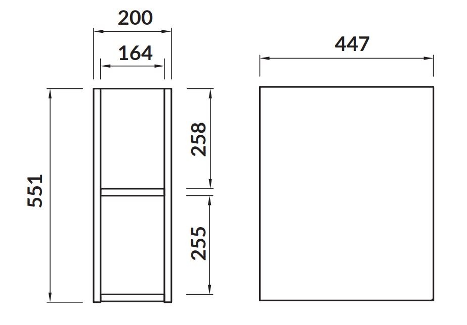 Otevřená skříňka /police/ pod desku série MODUO vyrobená z odolného materiálu s úpravou proti vlhkosti. Skříňka je vyrobená v dubovém provedení a je určena pro montáž se skříňkami řady MODUO.