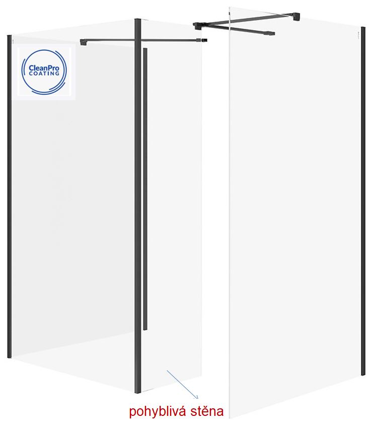- 3x WALK-IN 90 cm, 1x pohyblivá stěna 30 cm