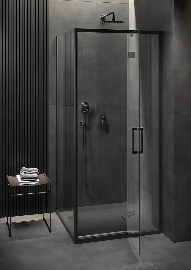 Sprchový kout LARGA je vyroben z tvrzeného bezpečnostního skla o síle 6 mm, které zajišťuje stabilitu konstrukce a zaručuje bezpečnost používání. Sklo je vybaveno ochranným hydrofobním povlakem CleanPro, který účinně zabraňuje usazování vodního kamene a nečistot, což usnadňuje udržování koutu v čistotě. Kovový závěs je v jedné rovině se skleněnou tabulí a na vnitřní straně kabiny má funkci zvedání dveří, což prodlužuje životnost těsnění. Inovativní mechanismus pantů umožňuje zastavení dveří při otevření pod úhlem 90° a poskytuje ochranu proti náhodnému nárazu. Oboustranná madla jsou vyrobena z vysoce kvalitního kovu, mají vroubkovanou úpravu a spojující styl s funkčností a odolností. Sprchový kout, je vybaven funkčním stěnovým profilem, který se přizpůsobí nerovnostem stěny až o 15 mm. Magnetická těsnění zvyšují komfort používání. Matně černé detaily zdůrazňují modernost a minimalistickou formu koutů.