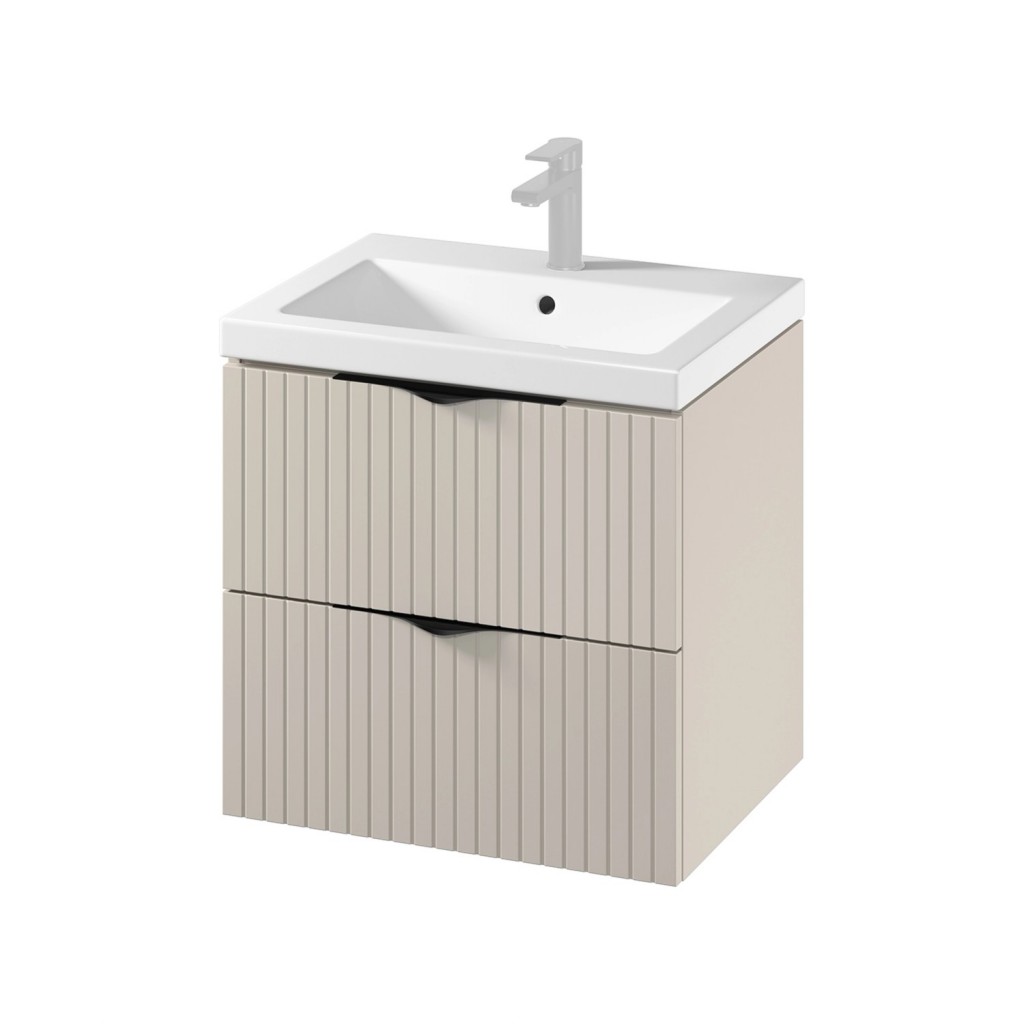 Představujeme vám závěsnou umyvadlovou skříňku TIRSO s keramickým, nábytkovým umyvadlem COMO 60. Skřínka je vyrobená z 16 mm dřevotřískové desky, je vybavená dvěma prostornými zásuvkami se systémem tichého dovírání. Přední čela šuplíků jsou frézovaná a doplnit skříňku můžete ocelovými úchytkami, které jsou dodávané v barevném provedení chrom a černá mat. Keramické umyvadlo má otvor pro baterii a bezpečnostní přepad.