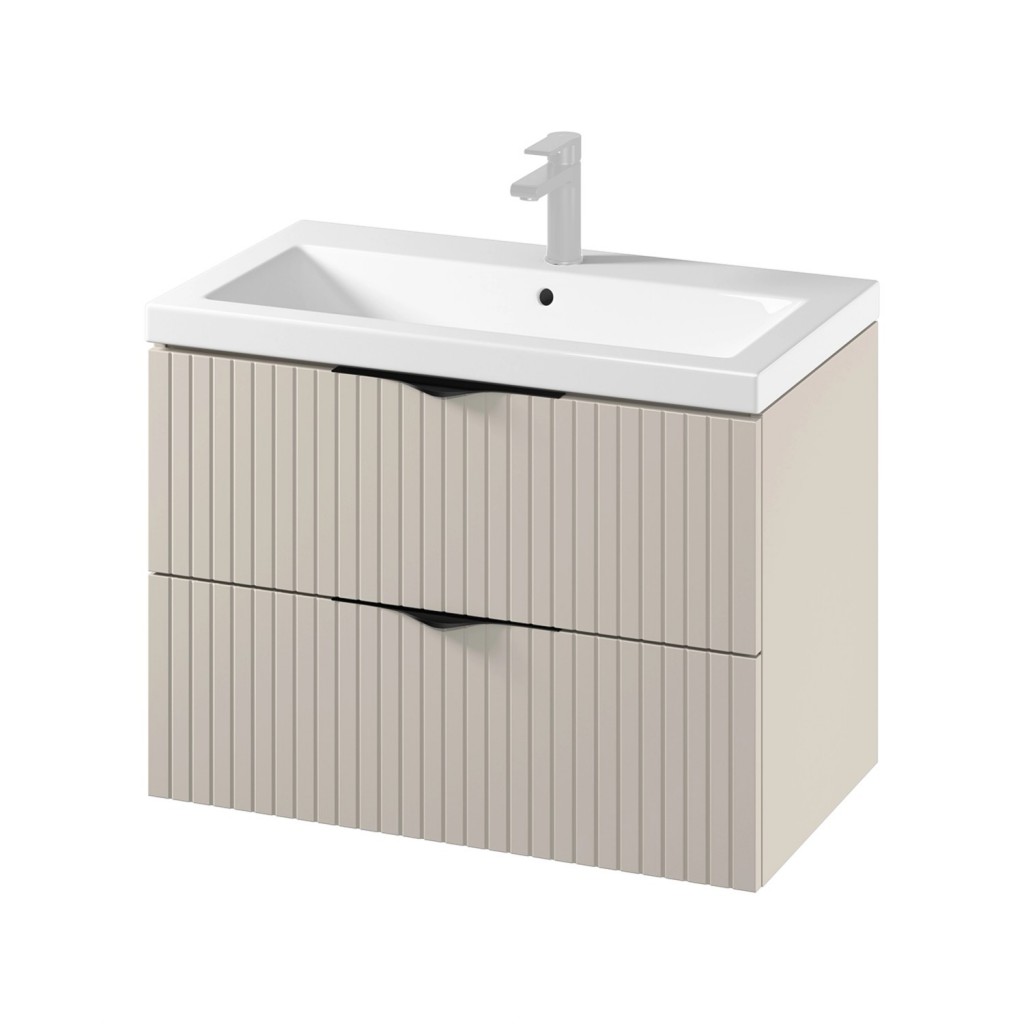 Představujeme vám závěsnou umyvadlovou skříňku TIRSO s keramickým, nábytkovým umyvadlem COMO 80. Skřínka je vyrobená z 16 mm dřevotřískové desky, je vybavená dvěma prostornými zásuvkami se systémem tichého dovírání. Přední čela šuplíků jsou frézovaná a doplnit skříňku můžete ocelovými úchytkami, které jsou dodávané v barevném provedení chrom a černá mat. Keramické umyvadlo má otvor pro baterii a bezpečnostní přepad.