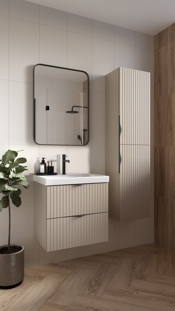 Nábytek série TIRSO je investice do pohodlí a stylu vašeho domova. Jeho design, kombinovaný s praktickými funkcemi a dostupnou cenou, činí ideální řešení pro jednotlivce a rodiny, kteří si chtějí vybavit svou koupelnu. S nábytkem TIRSO se koupelna stává nejen místem hygieny, ale také místem relaxace a pohodlí. Série TIRSO je dodávaná v barevných variantách: bílá mat, kašmír mat a fjord.