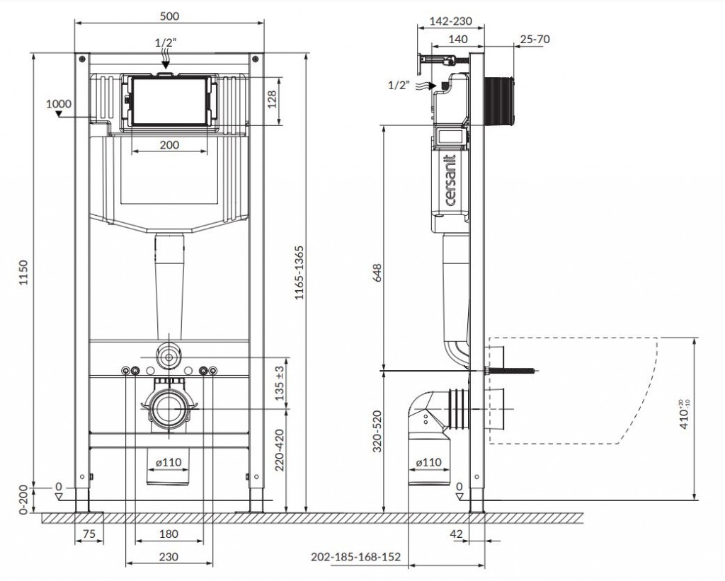 SET C15: AQUA 50 PNEU QF FRAME + CITY BY CERSANIT OVÁLNÁ CLEANON ZÁVĚSNÁ WC MÍSA SE SEDÁTKEM