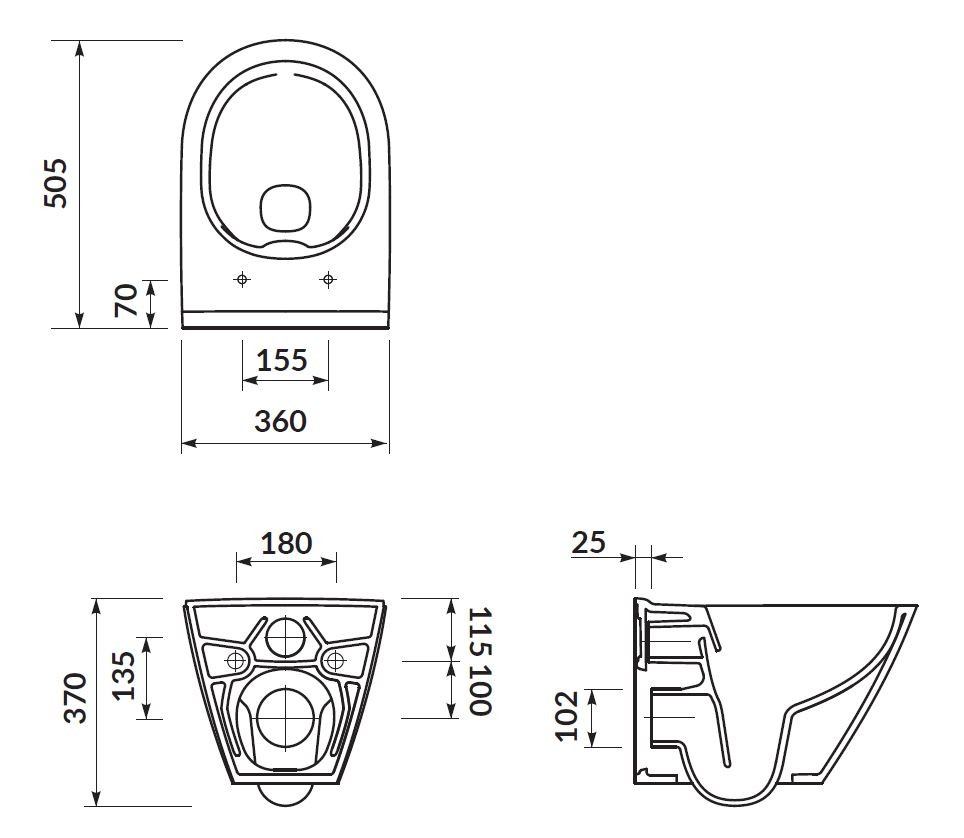 - WC MÍSA (cm): šířka 36; hloubka 50,5; výška 37