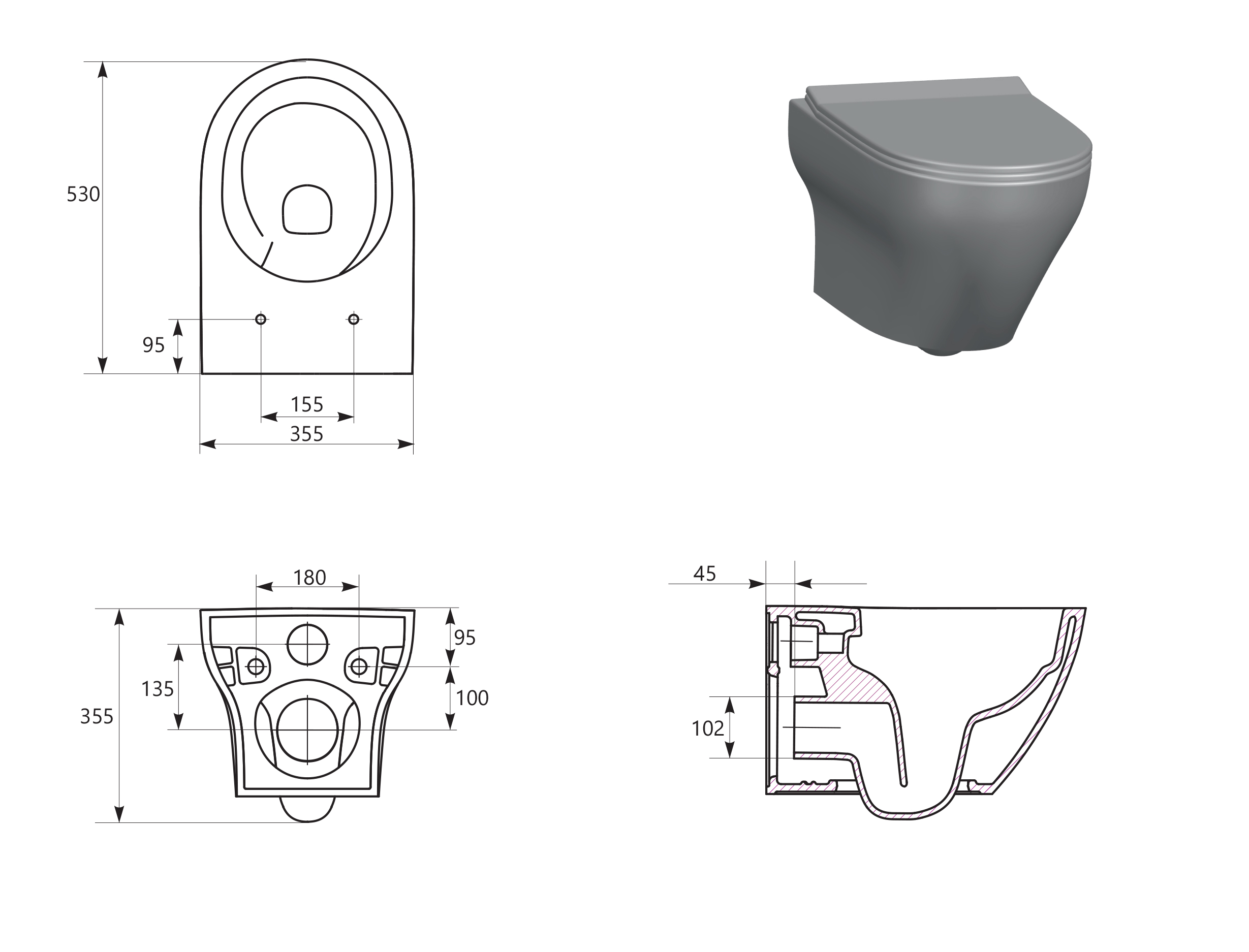 Závěsné WC je z výroby připraveno pro instalaci na podomítkovou montáž. Jinak řečeno, je potřeba, abyste nádobku na splachování zazdili předem a připravili si závitové tyče, na které WC zavěsíte. Rozteč otvorů pro závitové tyče je 18 cm.