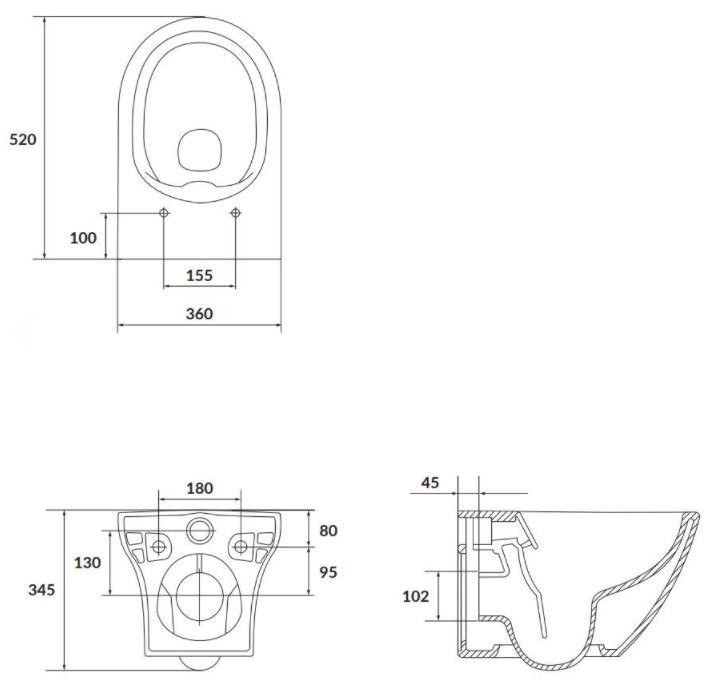 - WC MÍSA (cm): šířka 36; hloubka 52; výška 34