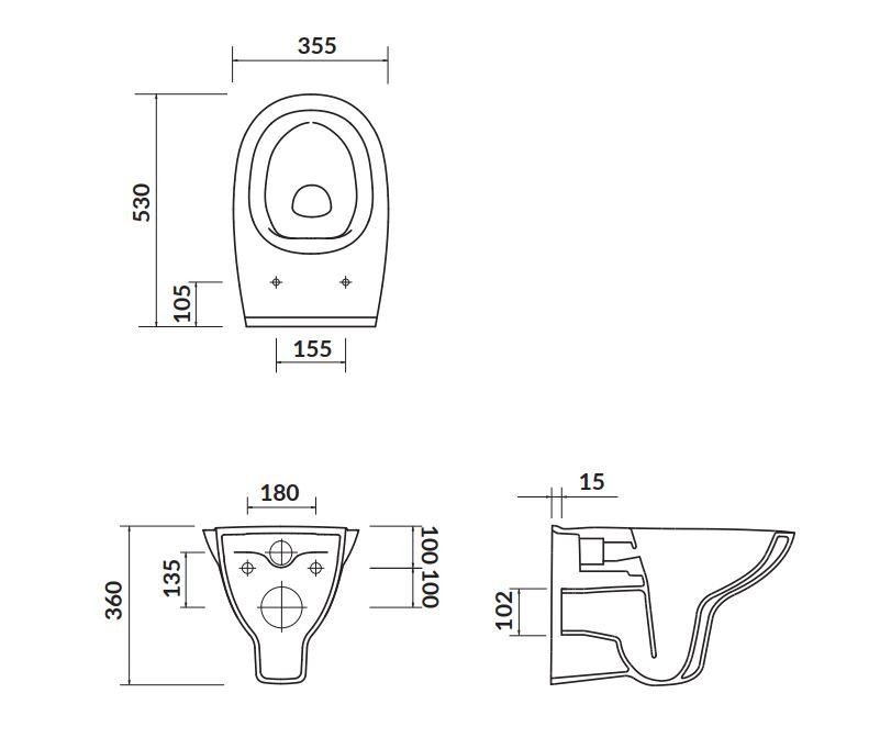 - WC MÍSA (cm): šířka 35,5; hloubka 53; výška 36