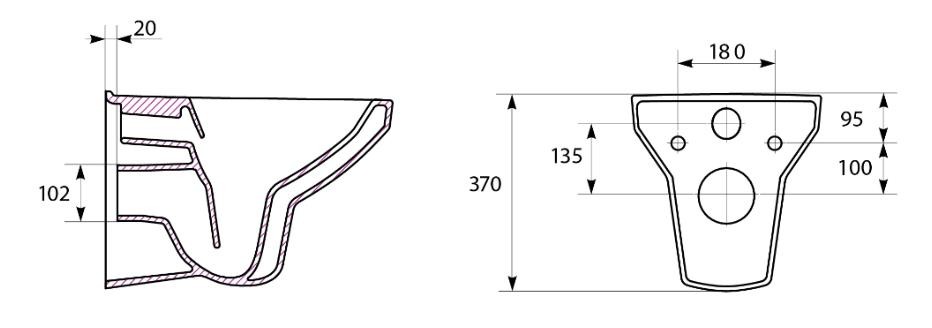 - WC MÍSA (cm): šířka 35; hloubka 51,5; výška 37