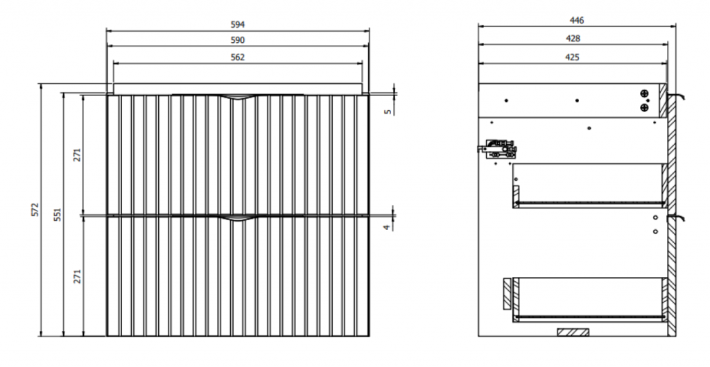 Sada obsahuje umyvadlovou skříňku TIRSO 60 ve verzi DSM a keramické umyvadlo COMO 60. Skříňka má dvě prostorné zásuvky s plným dnem, které poskytují více místa pro uložení různých koupelnových doplňků – proto doporučujeme použít prostorově úsporný sifon. Čelo skříňky je vyrobeno z drážkované MDF desky s matnou povrchovou úpravou, která jí dodává jemnou texturu a elegantní vzhled. Korpus skříňky je vyroben z laminované dřevotřísky, dostupné také v matné povrchové úpravě.