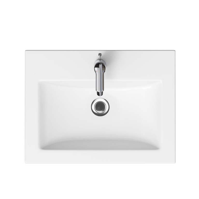 Obdélníkové keramické umyvadlo COMO 60 má centrální otvor pro armaturu a přepad a lze jej doplnit keramickými nebo kovovými click-clack zátkami od firmy Cersanit.