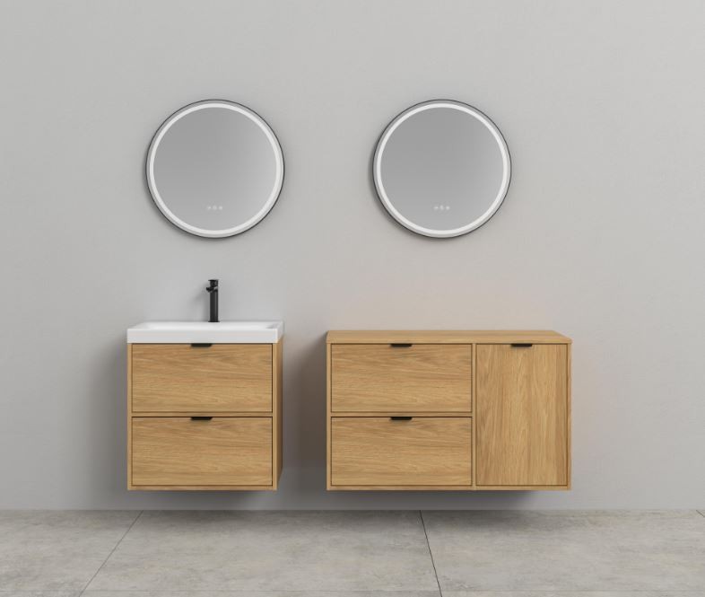 - přírodní dub hikora pro teplý a útulný vzhled koupelny