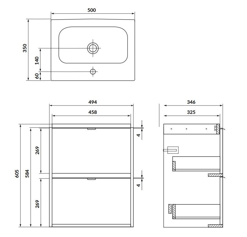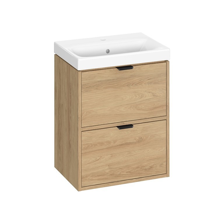 Skříňka je vyrobena z odolné laminované dřevotřísky o tloušťce 16 mm, která zajišťuje dlouhou životnost a snadnou údržbu. Díky závěsnému provedení působí koupelna vzdušněji a zároveň usnadňuje úklid pod skříňkou. Kompaktní rozměry (šířka 50 cm, hloubka 34,6 cm, výška 65,5 cm) umožňují instalaci i do menších koupelen nebo WC.