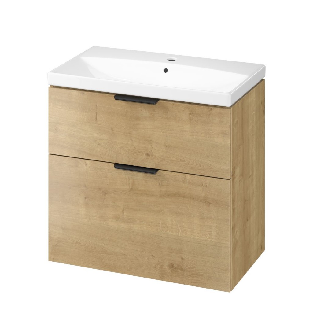 Sada CITY by Cersanit 50 kombinuje styl a funkčnost v jednom balení. Obsahuje závěsnou umyvadlovou skříňku s dvěma objemnými zásuvkami a nábytkové keramické umyvadlo. Skříňka v dekoru dub je vyrobena z laminované dřevotřísky a disponuje systémem tichého dovírání. Elegantní umyvadlo nabízí dostatek prostoru a je vybaveno středovým otvorem pro baterii i přepadem.