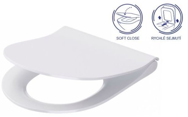 Součástí mísy je tenké sedátko z duroplastu s měkkým zavíráním s funkcí snadného uvolnění.