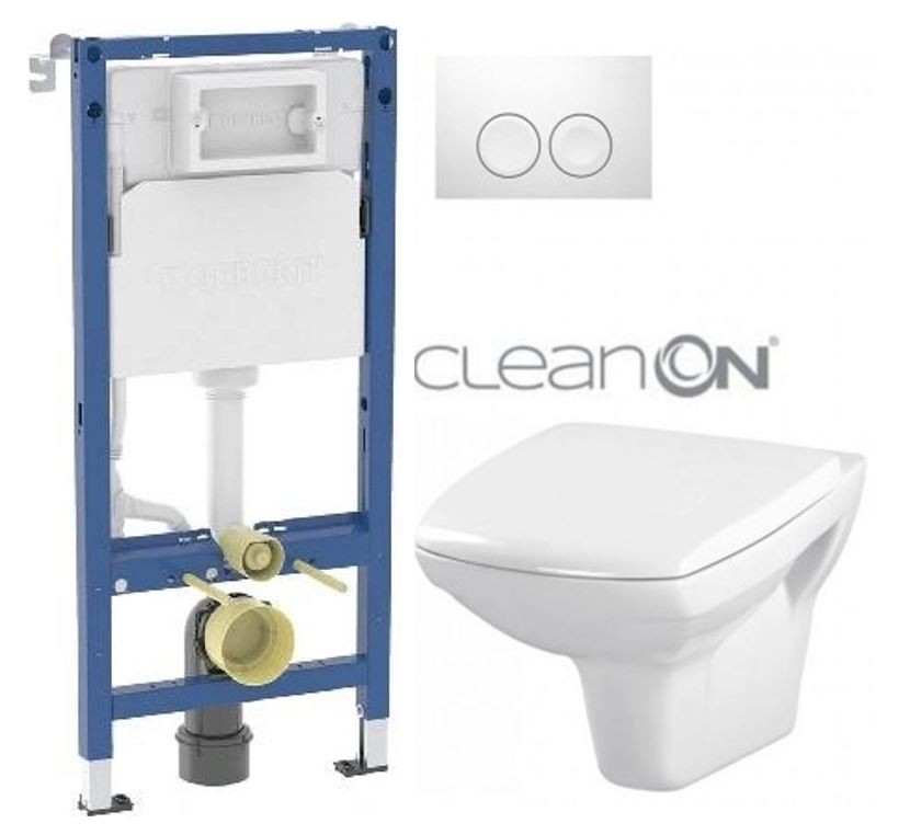WC závěsná mísa CARINA NEW CleanOn elegantního vzhledu s horizontálním odpadem, funkcí splachování 2,5/5, 3/5l.