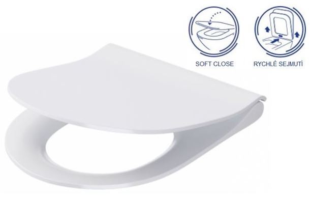 Součástí mísy je tenké sedátko z duroplastu s měkkým zavíráním s funkcí snadného uvolnění.
