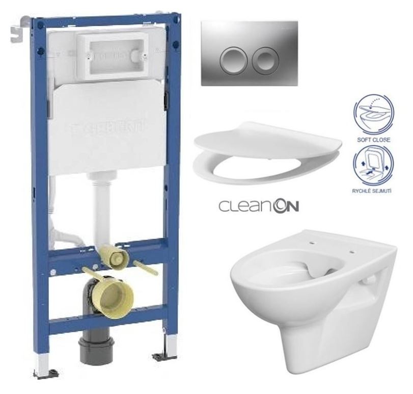 Závěsná mísa PARVA Clean ON elegantního vzhledu s horizontálním odpadem. Funkce splachování 2,5/5, 3/5l.