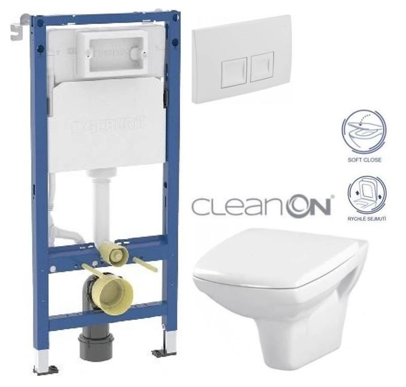 WC závěsná mísa CARINA NEW CleanOn elegantního vzhledu s horizontálním odpadem, funkcí splachování 2,5/5, 3/5l.
