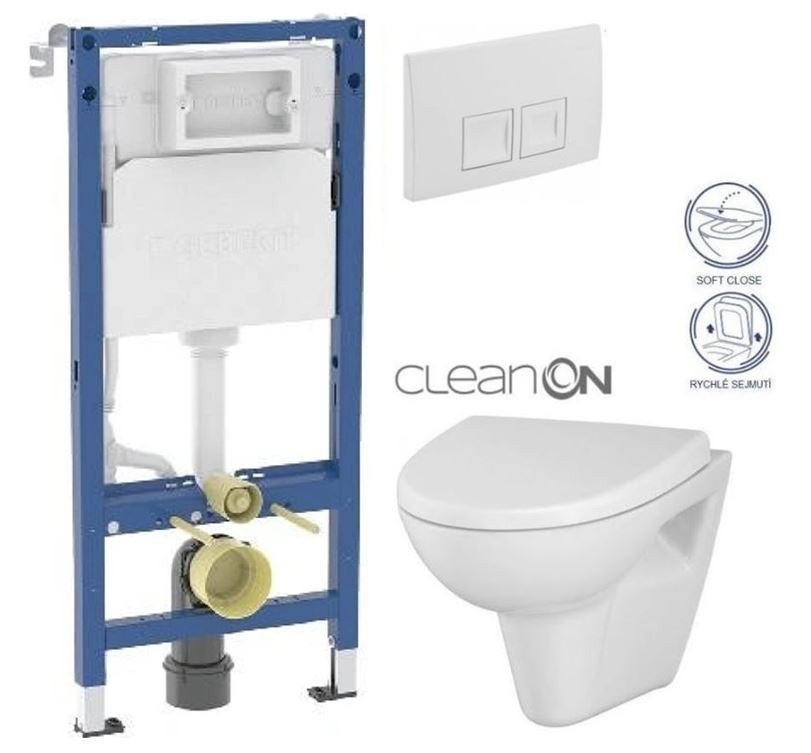 Závěsná mísa PARVA Clean ON elegantního vzhledu s horizontálním odpadem. Funkce splachování 2,5/5, 3/5l.