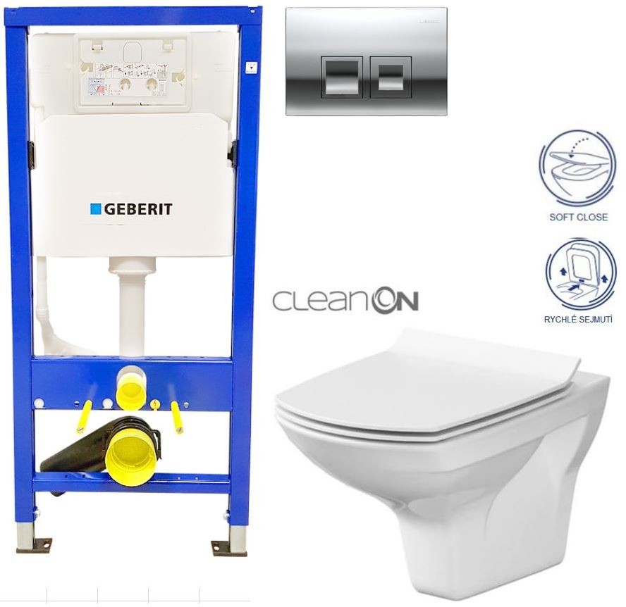 WC závěsná mísa CARINA NEW CleanOn elegantního vzhledu s horizontálním odpadem, funkcí splachování 2,5/5, 3/5l.