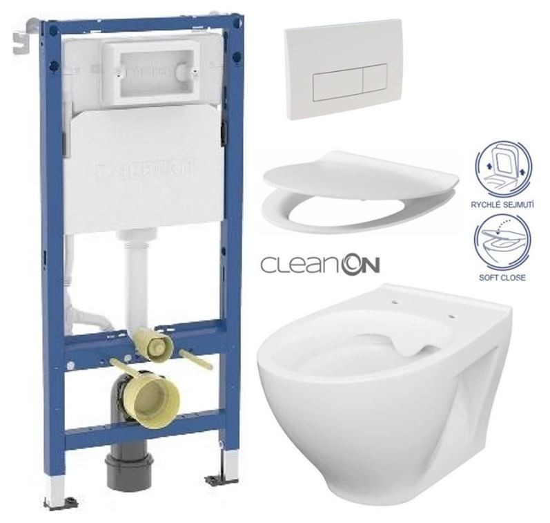 Oválná závěsná WC mísa MODUO s technologií CleanOn /bez oplachového kruhu/, kde se neshromžďují nečistoty jako ve standardních WC mísách s klasickým uzavřeným kruhem a jejich údržba je snažší a hygieničtější. WC mísa má úsporný oplach vody 3/5l.