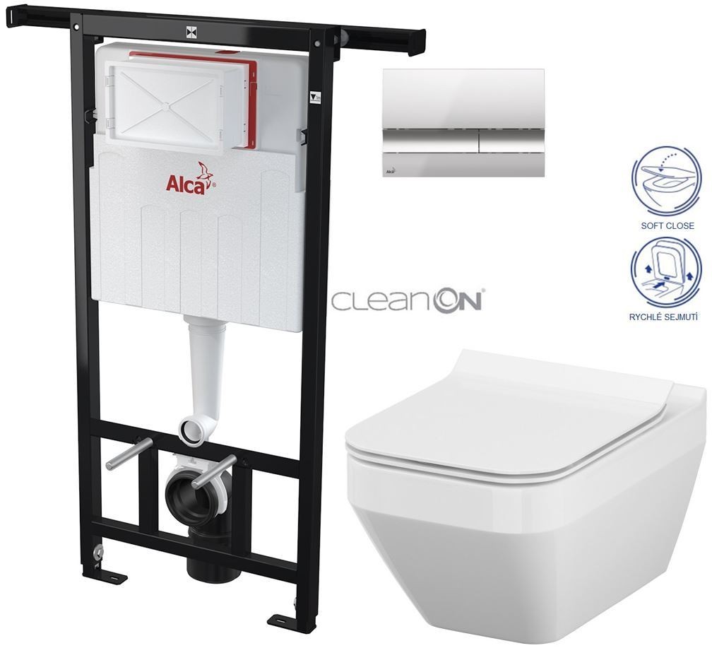 Závěsná mísa CREA, CLEAN ON /bez oplachového kruhu/ se zadním odtokem, funkce splachování 3,5l.