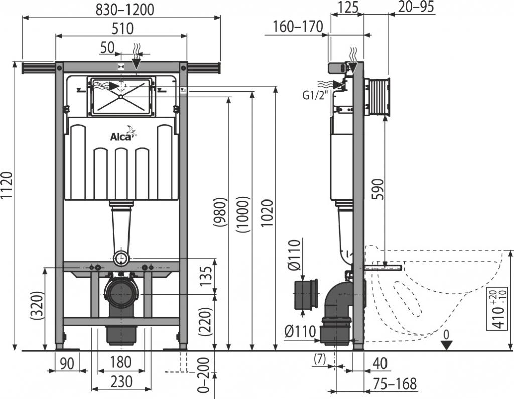 -Pro montáž závěsného WC s připojovací roztečí 180 mm nebo 230 mm
