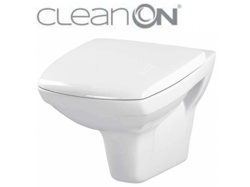 WC závěsná mísa CARINA NEW CleanOn elegantního vzhledu s horizontálním odpadem, funkcí splachování 2,5/5, 3/5l.