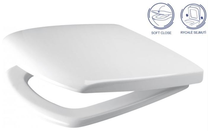 Duroplastové, antibakteriální WC sedátko se systémem pomalého sklápění SOFT CLOSE, s jednoduchým sejmutím a upevněním sedátka EASY OFF.