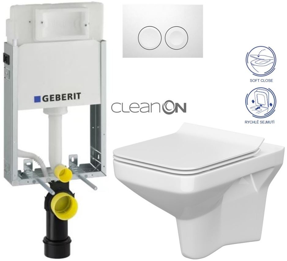 WC závěsná mísa COMO NEW CLEAN ON elegantního vzhledu s horizontálním odpadem, funkce splachování 2/4, 2,5/5, 3/5l.