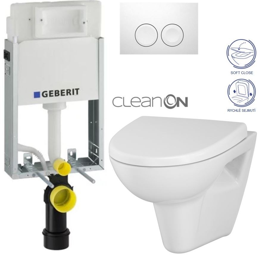 Závěsná mísa PARVA Clean ON elegantního vzhledu s horizontálním odpadem. Funkce splachování 2,5/5, 3/5l.