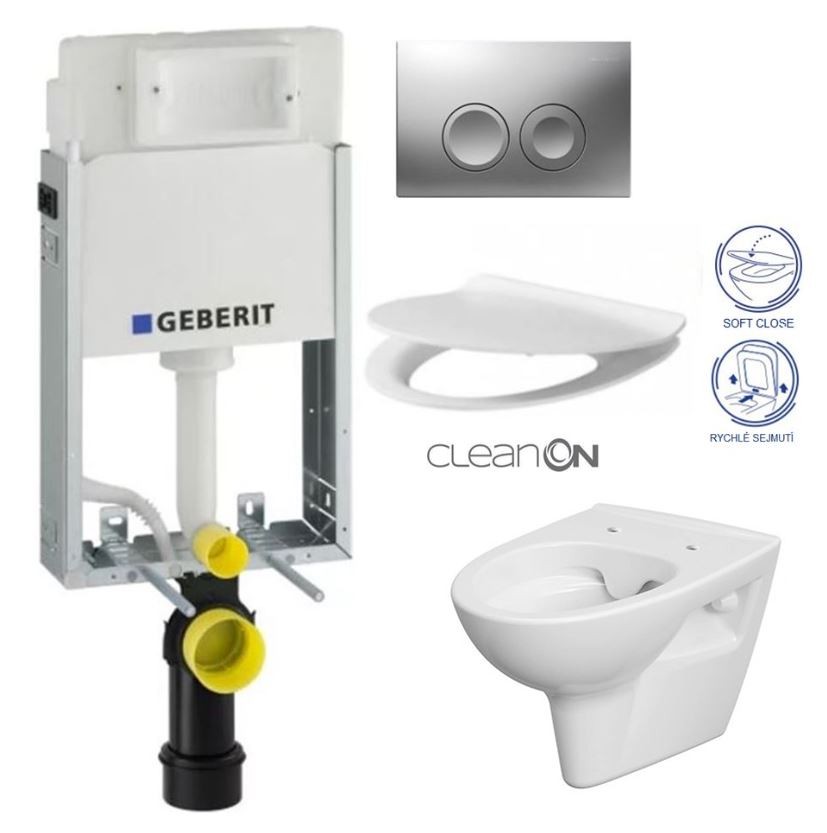 Závěsná mísa PARVA Clean ON elegantního vzhledu s horizontálním odpadem. Funkce splachování 2,5/5, 3/5l.